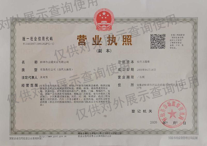 蚌埠市金通實業有限公司    網址: bbjtsy.com   Copyright ? 蚌埠市金通實業有限公司 版權所有   備案號: 皖ICP備2020019556號-1   營業執照